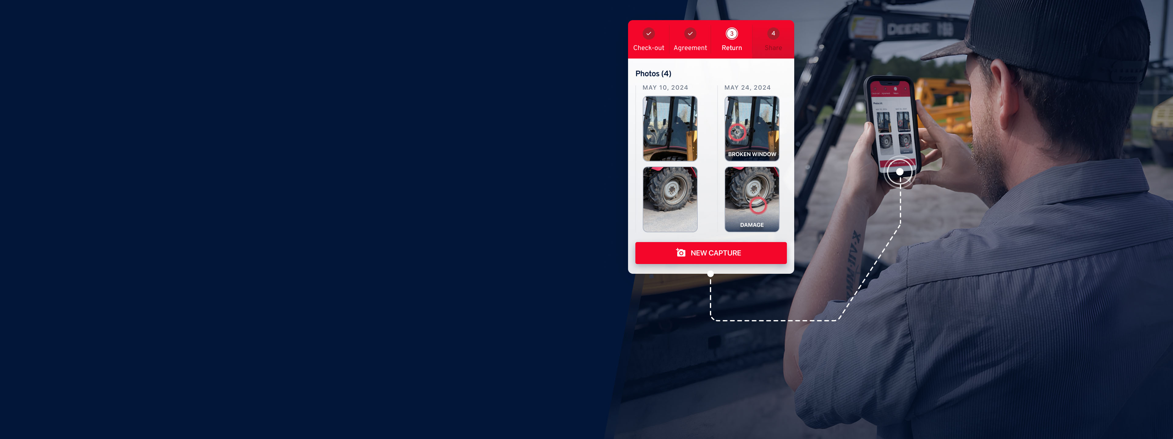 Conduct thorough inspections of rental equipment, vehicles, or properties in a fraction of the time.
