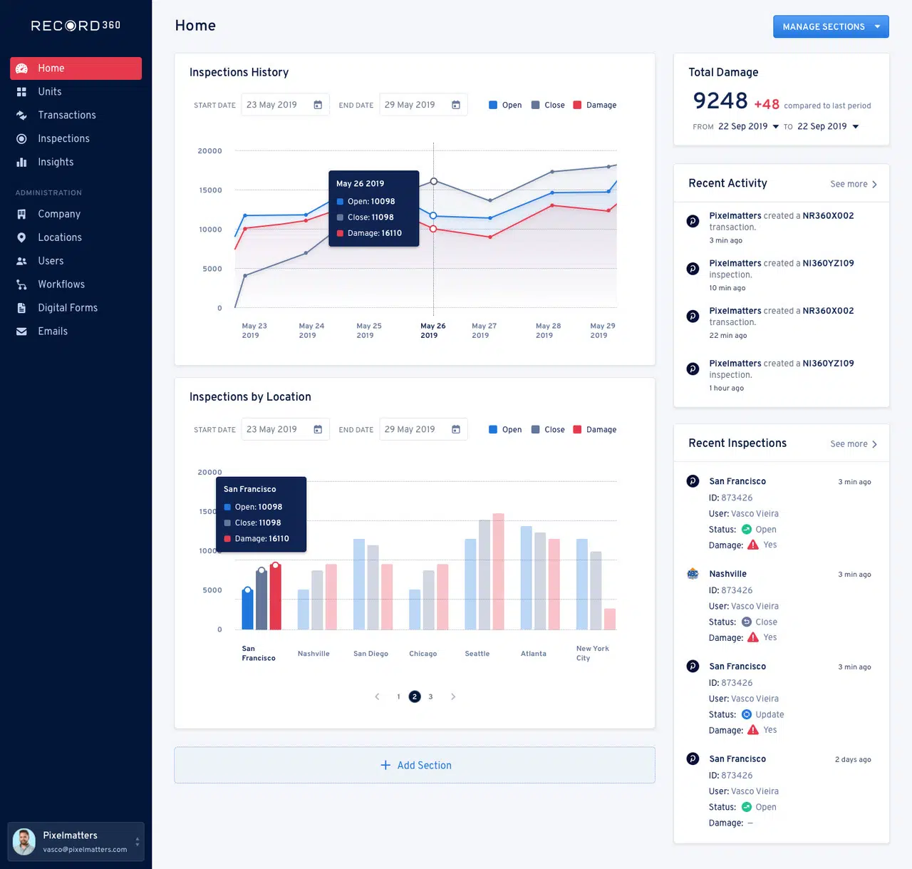 Keep your pulse on the business. Access past inspections, damage analytics, employee usage, and more from a central dashboard.